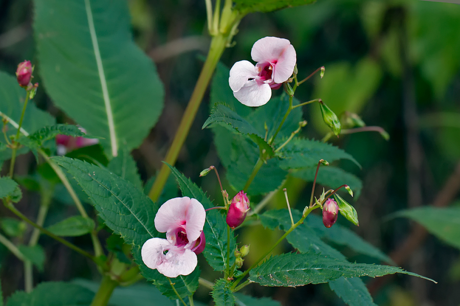 розовато-лиловые цветки недотроги железистой