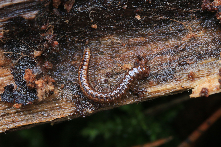 Ещё одна многоножка, но другого вида. Энтомологи до сих пор спорят о том, можно ли считать многоножек родственниками насекомых, как, впрочем, и мокриц. У этих учёных всё так сложно – но, если с лесом дружить, то, наверное, можно общаться с ним и попроще. Ещё