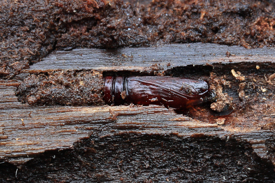 Часто на стволах деревьев или на пнях можно увидеть многочисленные пятна, похожие на капли воска от свечи: такими пробочками насекомые залепляют отверстия в древесине, за которыми находятся их зимующие личинки. ![]() Пробка, закрывающая вход в убежище личинки Вот,