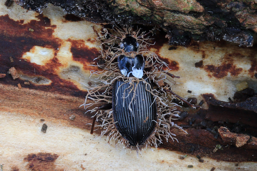 Кажется, этой жужелице уже никакая зимовка не понадобится, поскольку это только мумия жука. Существуют такие виды грибов, которые паразитируют на насекомых, прорастая в их теле, например, гриб кордицепс. Так что эта жужелица, по-видимому, и стала жертвой подобного грибка. Рагий