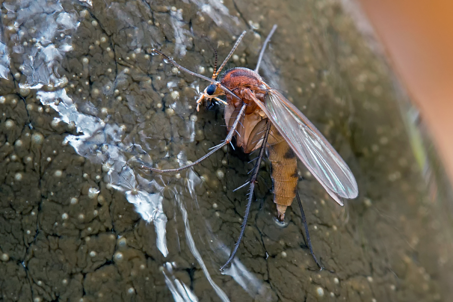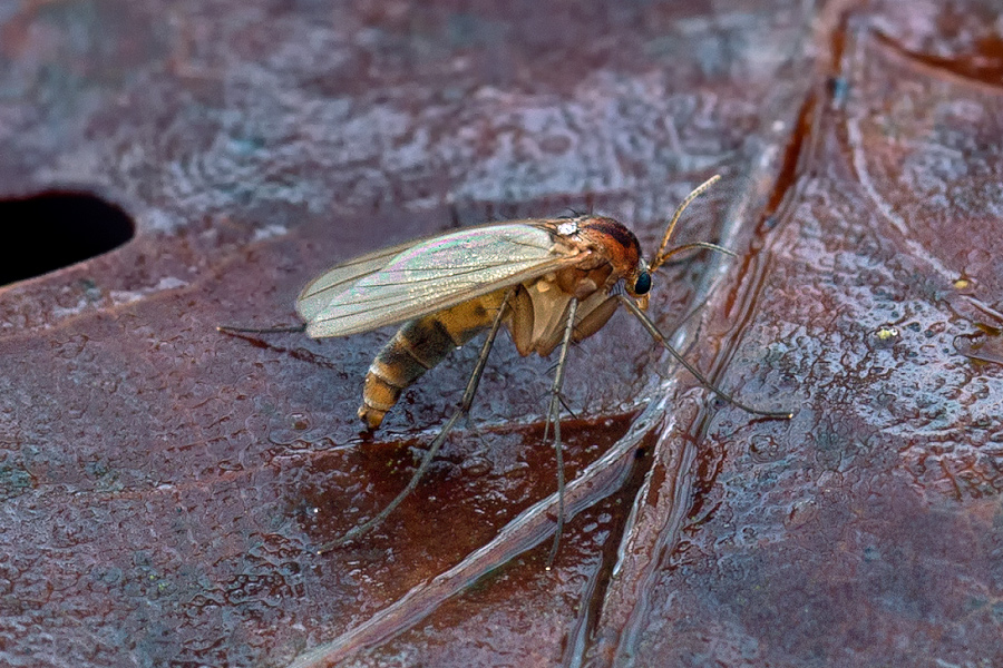 А теперь, откладывая яйца перед зимой под слой листвы, комарики рассчитывают на то, что их личинкам здесь будет хватать на пропитание разной гнили и грибного мицелия. ![]() Грибной комарик или плоскоус откладывает яйца на опавшие листья Шипокрылки