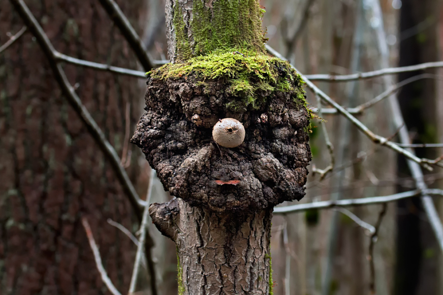 Отправляясь с начала декабря в лес, следует иметь в виду, что дело идёт к Рождеству и здесь уже можно случайно встретить или, по крайней мере, обнаружить оставленные следы какого-нибудь лешего или гнома – например, до поры до времени припрятанный где-то под ёлкой мешок с подарками. Что-то вроде этого узелка из лёгкой пушистой материи, наполненного оранжевыми шариками. И не для нас