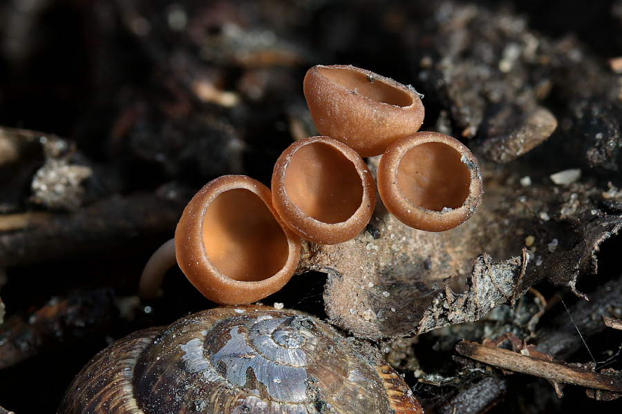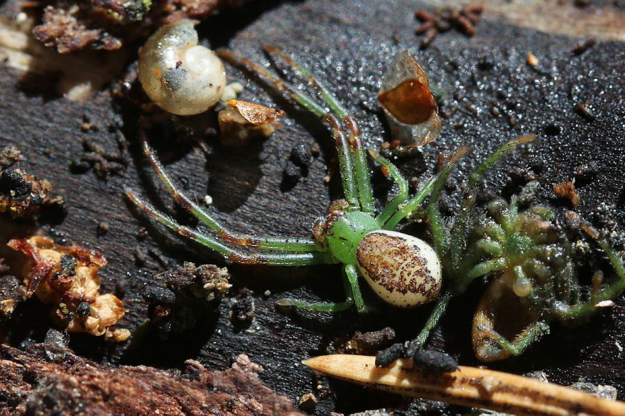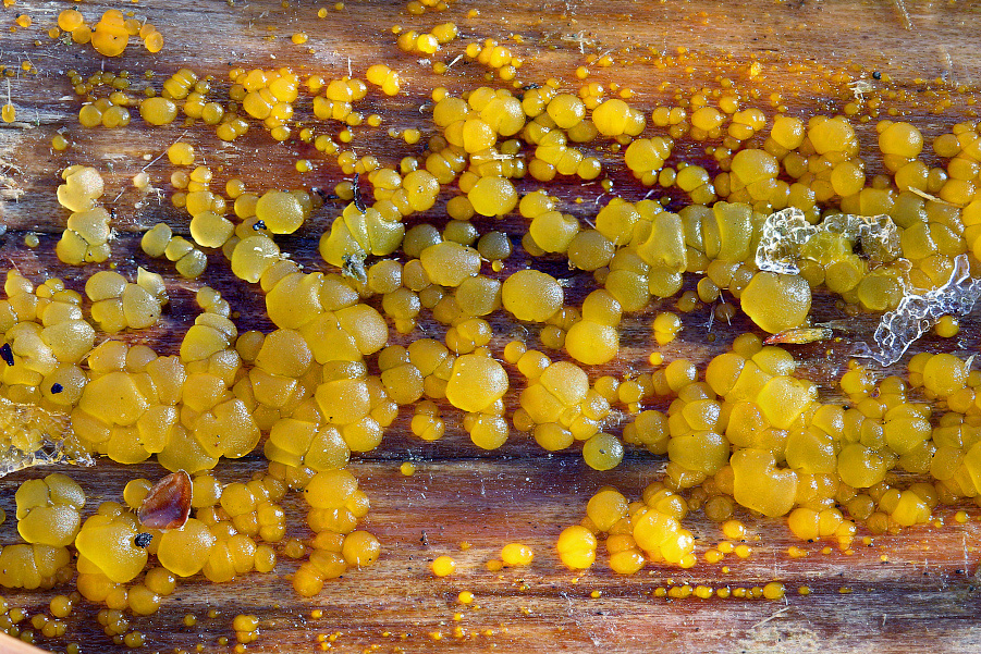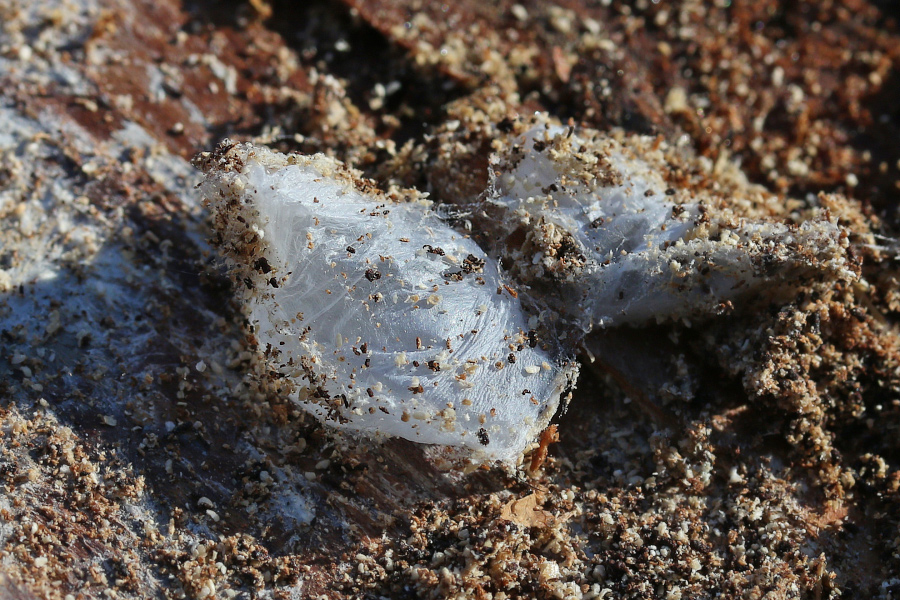 какие-то глиняные бокальчики. ![]() Цибория бокальчатая (Ciboria caucus), по-эстонски – urvaliudik Первые миниатюрныек саркосцифы. ![]() Саркосцифа австрийская (Sarcoscypha austriaca), по-эстонски – karikseen Теперь с каждым днём их будет всё больше и больше, и лес раскрасится в эти яркие алые саркосцифные цвета. ![]() Саркосцифа австрийская (Sarcoscypha austriaca), по-эстонски – karikseen Грибы зимнего периода почему-то любят краситься в яркие оранжевые цвета – наверное, им для чего-то нужно, чтобы их было видно издалека на чёрно-белом фоне зимнего леса. Вот ещё необычные ярко-оранжевые грибки, едва заметные на гниющих стволах упавших деревьев – дакримицес исчезающий. Размер этих образований у гриба всего несколько миллиметров. ![]() Дакримицес исчезающий (лат. Dacrymyces stillatus) в начальной форме развития, по-эстонски – tava-pisarseen При созревании цвет тела дакримицеса становится лимонно-жёлтым, что тоже добавляет весёлых красок в палитру начала марта. ![]() Дакримицес исчезающий (лат. Dacrymyces stillatus) в поздней стадии развития, по-эстонски – tava-pisarseen Здесь же рядом с грибами вылезли погреться на солнце из своих зимних палаток-укрытий первые паучки, например, этот паук-мешкопряд клубиона. ![]() Паук-мешкопряд клубиона (лат. Clubiona sp.) Клубионы не плетут ловчих паутинных сетей, охотясь на свою добычу по ночам. Часто этих пауков можно увидеть даже зимой во время оттепелей или ранней весной, когда они спешат куда-то по своим делам прямо на снегу. ![]() Паук-мешкопряд клубиона (лат. Clubiona sp.) А некоторым из них пока ещё хорошо и уютно в их мешках-палатках – они дожидаются настоящего тепла. В таких "палатках" самки замуровываются на зиму вместе с коконом, в котором отложена кладка яиц. ![]() Паутинный мешок-зимнее убежище паука-мешкопряда клубионы, там внутри сидит паучиха со своим главным богатством – коконом с яйцами. Греется под мартовским солнцем и ещё один паучок – зелёный паук-краб. ![]() Паук-бокоход, или паук-краб (лат. Diaea dorsata), по-эстонски – krabiämblik Пауки-бокоходы, как и клубионы, не строят ловчих сетей, а прячутся на цветках или в траве, используя на охоте в качестве оружия свои длинные передние ноги. ![]() Паук-бокоход в зимнем убежище под корой дерева. Первая божья коровка в лесу. ![]() Божья коровка семиточечная (Coccinella septempunctata), по-эстонски – seitsetäpp-lepatriinu Крошечная цикадка ещё в сонном оцепенении, всю зиму она тоже провела под корой дерева. ![]() Цикадка (лат. Cicadellidae), по-эстонски – tirt Как обычно, самая первая и самая долгоживущая в сезоне бабочка крушинница или лимонница появилась раньше всех. Ещё снег в лесу и на обочинах дорог не растаял окончательно, а она уже порхает, найдя себе очистившиеся от снега пригорок или опушку. ![]() Крушинница или лимонница (Gonopteryx rhamni), по-эстонски – lapsuliblikas Первые печёночницы всегда нахожу на лугах Астангу-Мяэкюла. ![]() Печеночница (Hepatica), по-эстонски – sinilill А первые галантусы в своём саду. ![]() Подснежник, или галантус (Galantus), по-эстонски – lumikelluke Пока